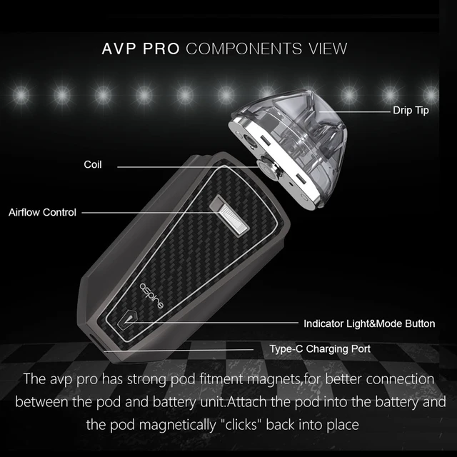 Aspire AVP Pro Kit Pod system bobine remplaçable et débit d’air réglable avec batterie intégrée de 1200mAh en Stock