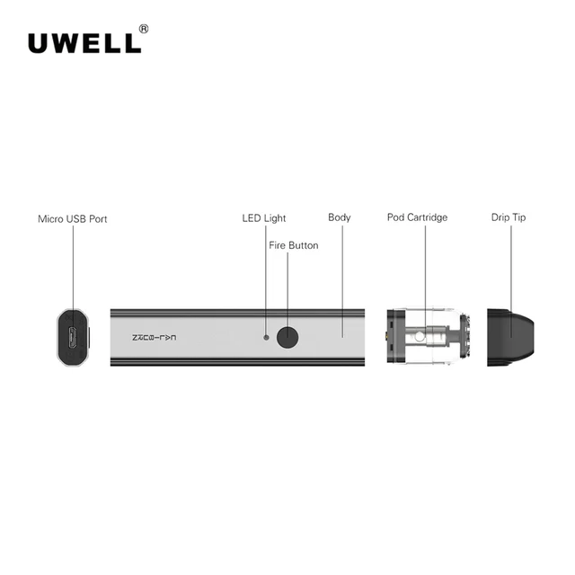 Uwell – Kit de dosettes Caliburn 11W, Cigarette électronique avec cartouche 2ml, 520mah, Mod intégré, bobine 1.4ohm