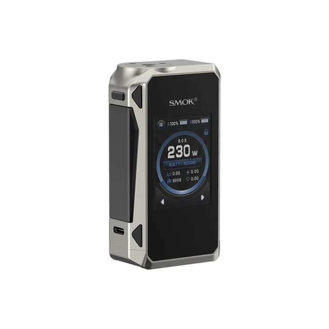 SMOK G-PRIV 4 Mod 230W. Le mod est alimenté par une puce IQ-M, prend en charge deux batteries 18650. Un écran tactile de 2.0 pouces y est ajouté, ce qui facilitera l’opération interactive. De plus, une grande clé de tir latérale est conçue pour une utilisation facile sur l’appareil. Il existe trois modes pour satisfaire différents besoins: Mode puissance, Mode TC, mon Mode. Compatible avec Mini réservoir TFV18/Mini bobine maillée TFV18, il vous apportera un nuage de bête et une saveur de beauté.