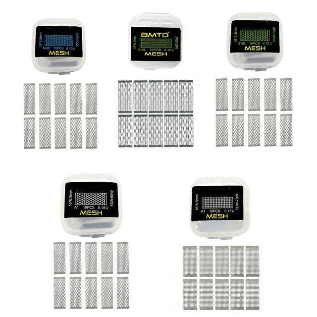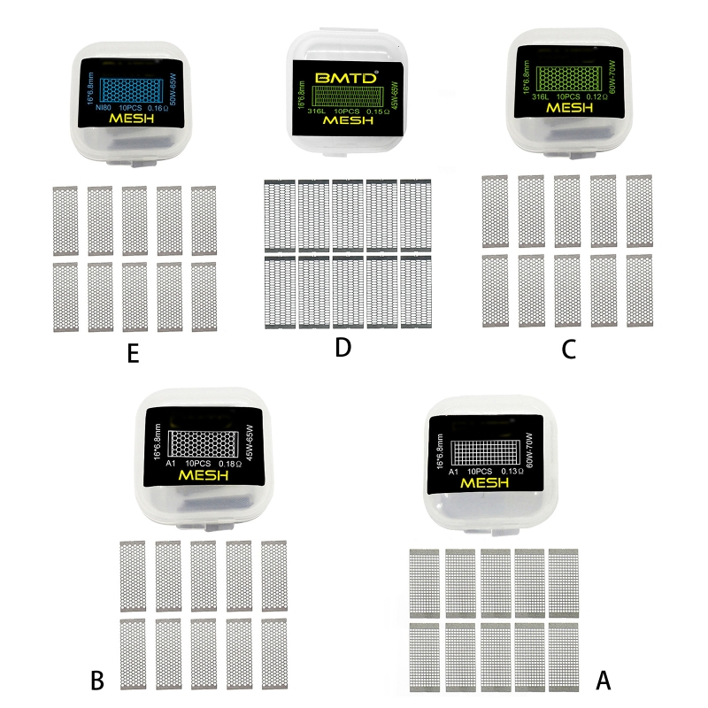 Il y a A1 0.13ohm, A1 0.18ohm ,SS316L 0.12ohm,SS316L 0.2ohm, NI80 0.16ohm résistance pour votre choix.