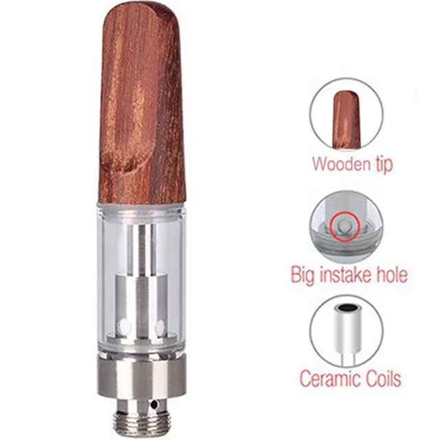100Ps,50Ps,20Ps/lot embout en bois cartouche CBD stylo vapoteur à bobine en céramique 0.5ml/1.0ml vapeur 510 filetage TH105 atomiseur