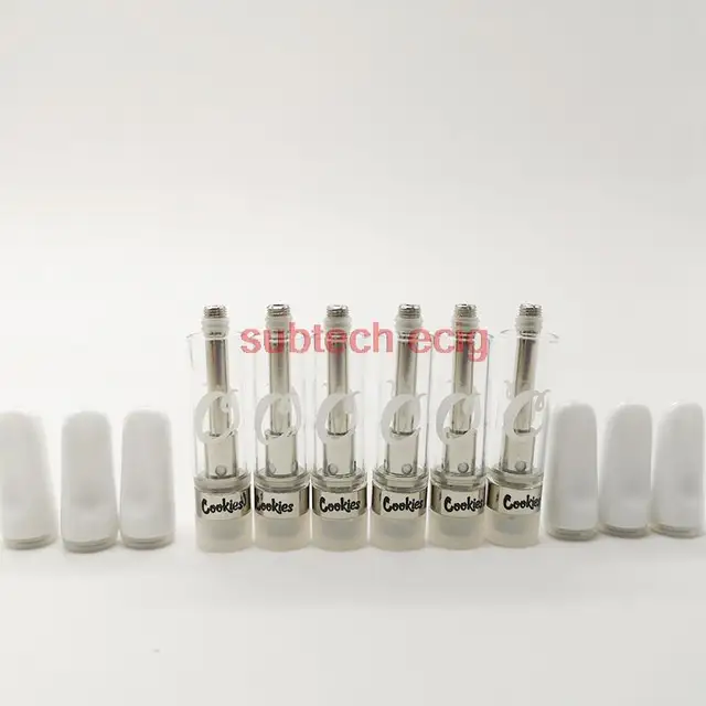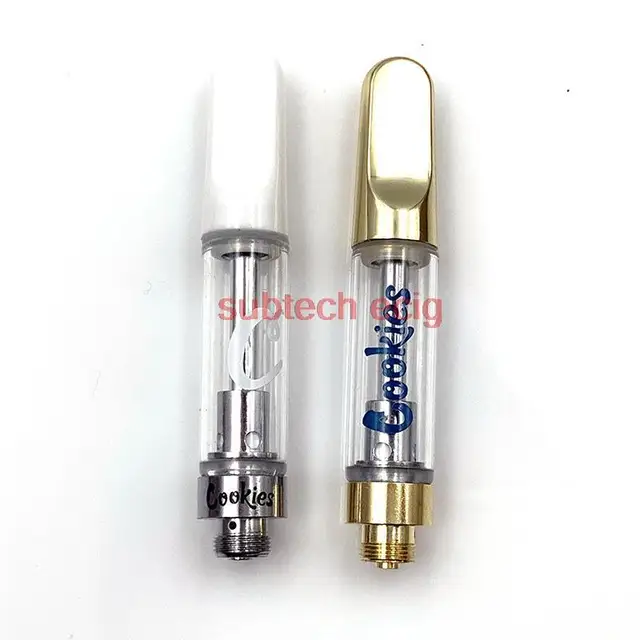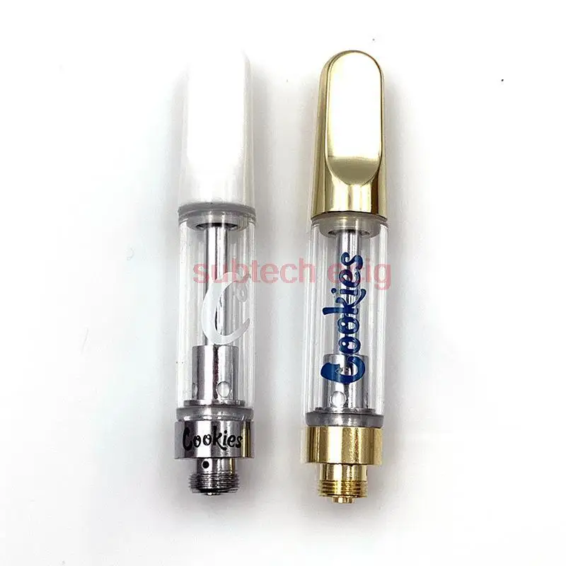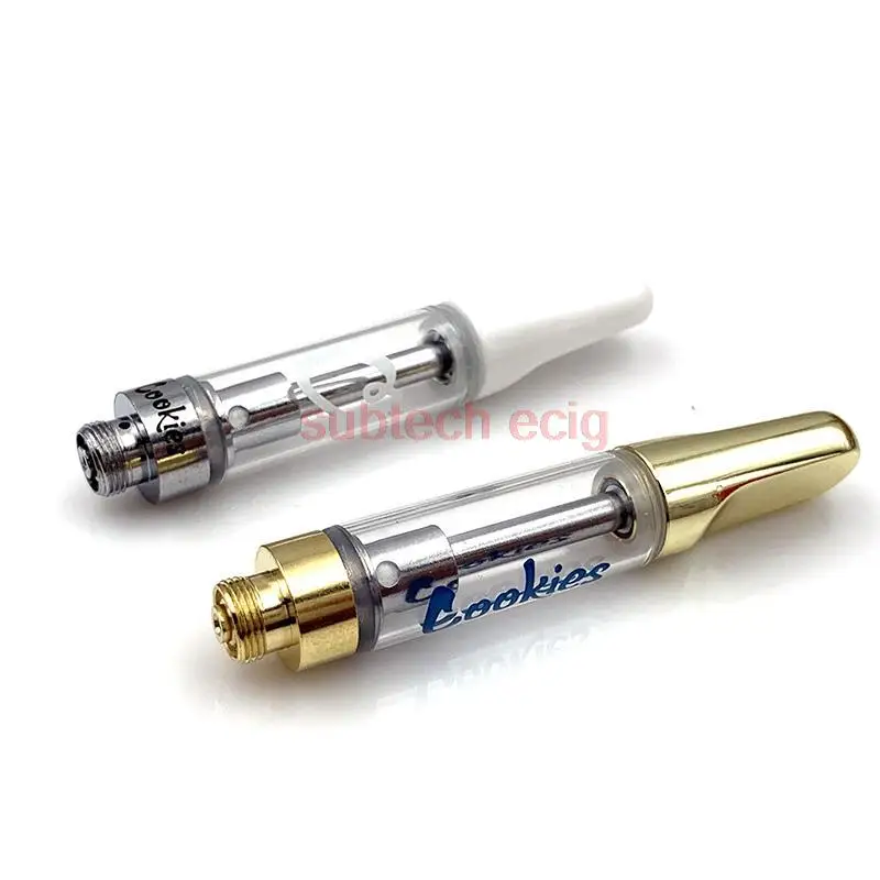10pcs Cookies Cartridge Cart Vape Pen Carts 0.5ml 1.0ml Glass Tank Ceramic Coil 510 Thread Cartridges with White Gold Drip Tips