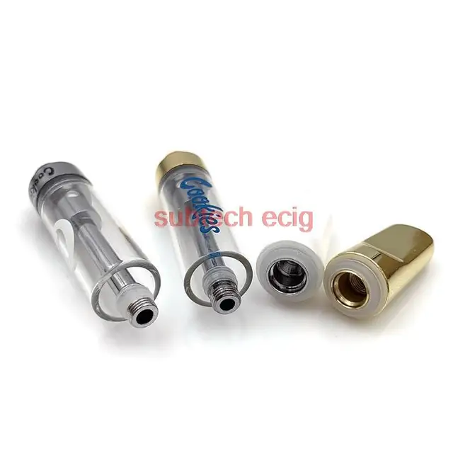 10pcs cartouche de biscuits chariot de stylo de vapoteur 0.8ml 1.0ml réservoir en verre bobine en céramique 510 cartouches de filetage avec embouts d'égouttage en or blanc
