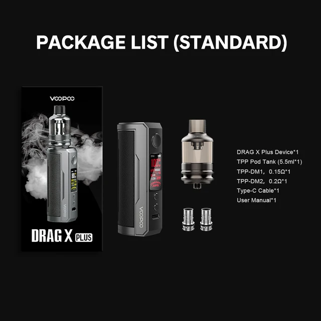 Le paquet de Drag X Plus Mod Pod Kit est livré avec: