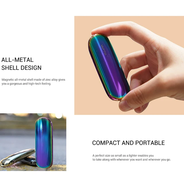 Élégant est le premier système de dosette d’origine avec coque magnétique entièrement métallique qui peut ajuster automatiquement le flux d’air en fonction du volume d’air inhalé par l’utilisateur. Une taille parfaite aussi petite qu’un briquet vous permet de l’emporter quand vous voulez et où que vous alliez. Un réservoir amovible intégré avec atomiseur en céramique de diatomite de génération 4 vous offre des performances exceptionnelles de forte capacité d’absorption, un bon verrouillage e-liquide et une excellente conductivité thermique pour une cuisson plus rapide et un meilleur goût.