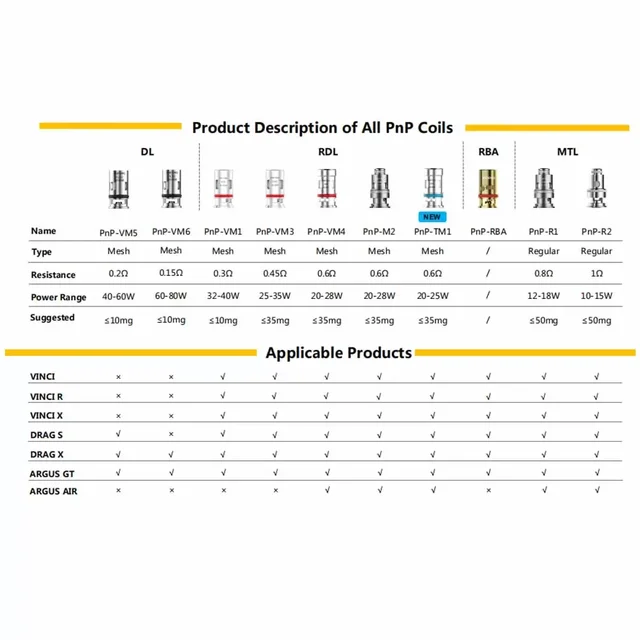 5pcs PnP-TR1 1.2ohm Bobine VM4 VM6 0.15ohm R1 0.8ohm Vinci Bobine D'air pour VINCI Glisser X Cosse Argus Vsuit Kit
