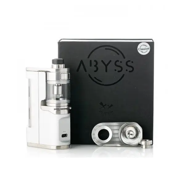 L’aspect général et la sensation de l’abyss AIO peuvent également être modifiés avec l’achat des kits de boutons qui sont disponibles en carré et rond en 3 finitions différentes, les 18650 Tubes disponibles en fumée et en gel, Les kits de pointes d’égouttage intégrées qui sont disponibles en delrin blanc ou delrin noir et enfin le pack de verre qui a 3 couleurs différentes (fumé, clair, Ultem)