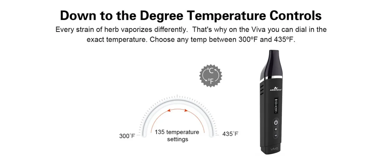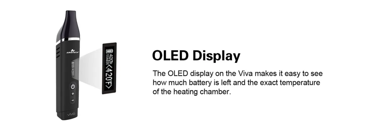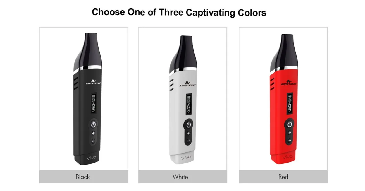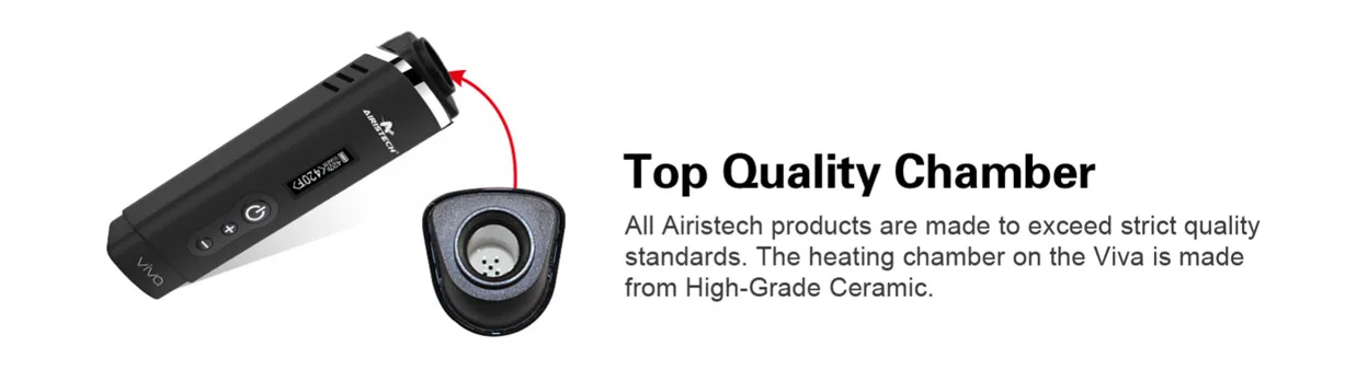 L’airistech Viva est un vaporisateur de séchage portable doté d’un OLED avancé, de réglages de température numériques et dispose d’une chambre de bol assez grande pour un vaporisateur portable. De plus, l’airistech possède une grande batterie interne de 2200mah pour moins de problèmes de charge. L’appareil est portable et très facile à transporter avec vous. Le contrôle numérique de la température vous permet de régler avec précision la température souhaitée. Une fois complètement chauffé, l’écran OLED intégré affichera «chaud» c’est quand vous êtes prêt à partir!