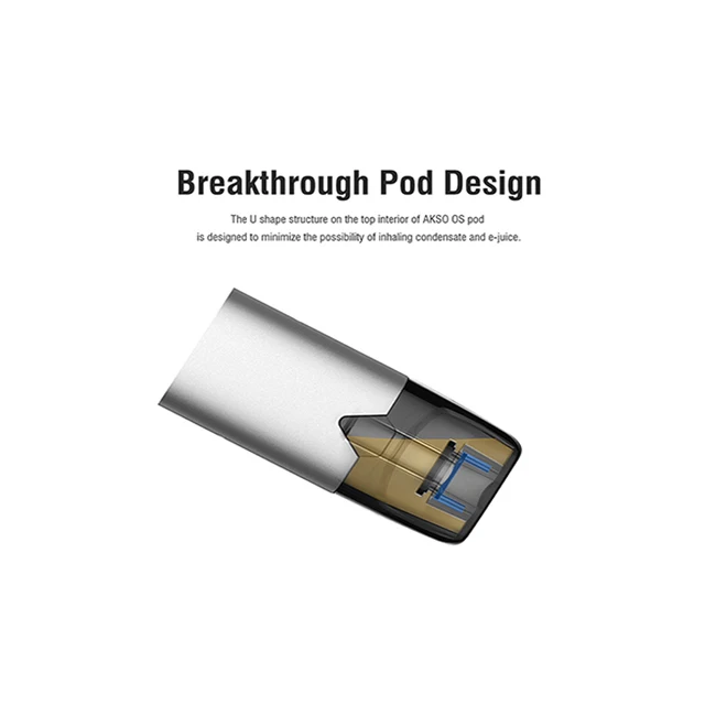 HCigar Akso OS Pod System est un vapoteur mince de style stylo, alimenté par une batterie rechargeable de 420mAh avec une puce XT innovante, construit en aluminium léger et robuste, et dispose d’un mécanisme de tir activé par tirage. Utilisation d’un voyant de batterie LED qui lit et affiche intuitivement la durée de vie de la batterie via lumière LED coloré. La structure en forme de U sur l’intérieur supérieur du pod AKSO OS est conçue pour minimiser la possibilité d’inhaler du condensat et du jus électronique.