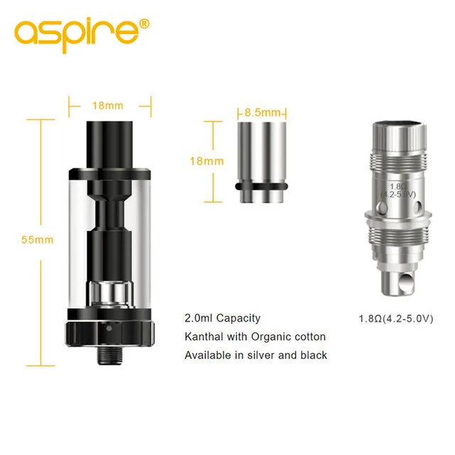 Aspire – atomiseur K3 BVC, réservoir avec 1,8 ohm BVC, capacité de 2ml, bobine verticale à fond BVC, clearomiseur de Cigarette électronique