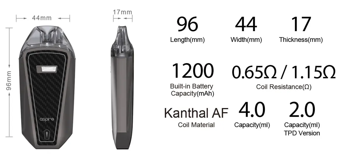 Aspire AVP Pro Kit Pod system bobine remplaçable et débit d’air réglable avec batterie intégrée de 1200mAh en Stock