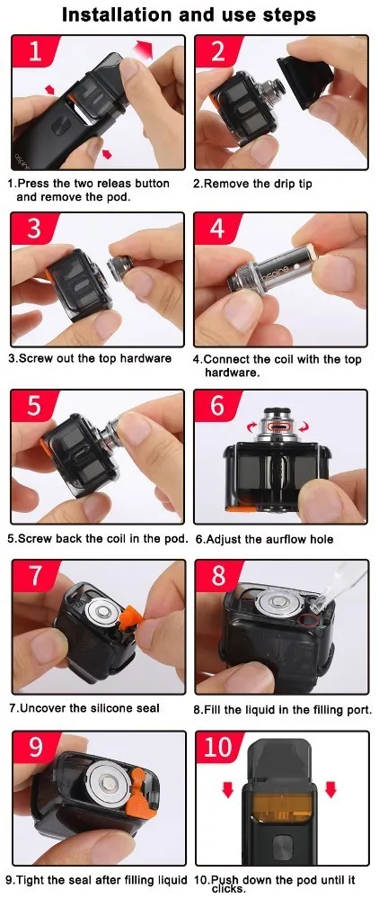 3. Lorsque vous remplissez le liquide, veuillez garder à l’esprit de ne pas remplir le liquide dans l’espace du noyau de la bobine, si vous le rechargez, veuillez le nettoyer immédiatement, sinon vous pouvez aspirer le liquide dans votre bouche sinon le liquide fuira.