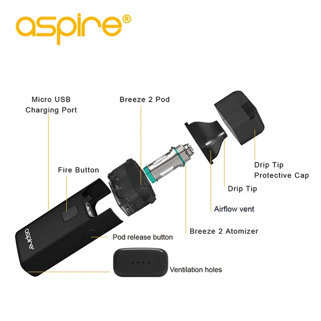 Cigarette électronique Aspire Breeze 2 Kit AIO capacité de 3ML cartouche remplaçable système Pod peut changer 0.6ohm 1.0ohm bobine de brise