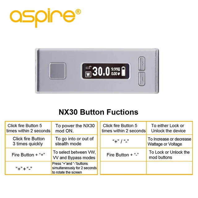 Aspire – Cigarette électronique X30 Rover, Kit Original avec réservoir atomiseur de 2ML Nautilus X, écran de 0.86 pouces
