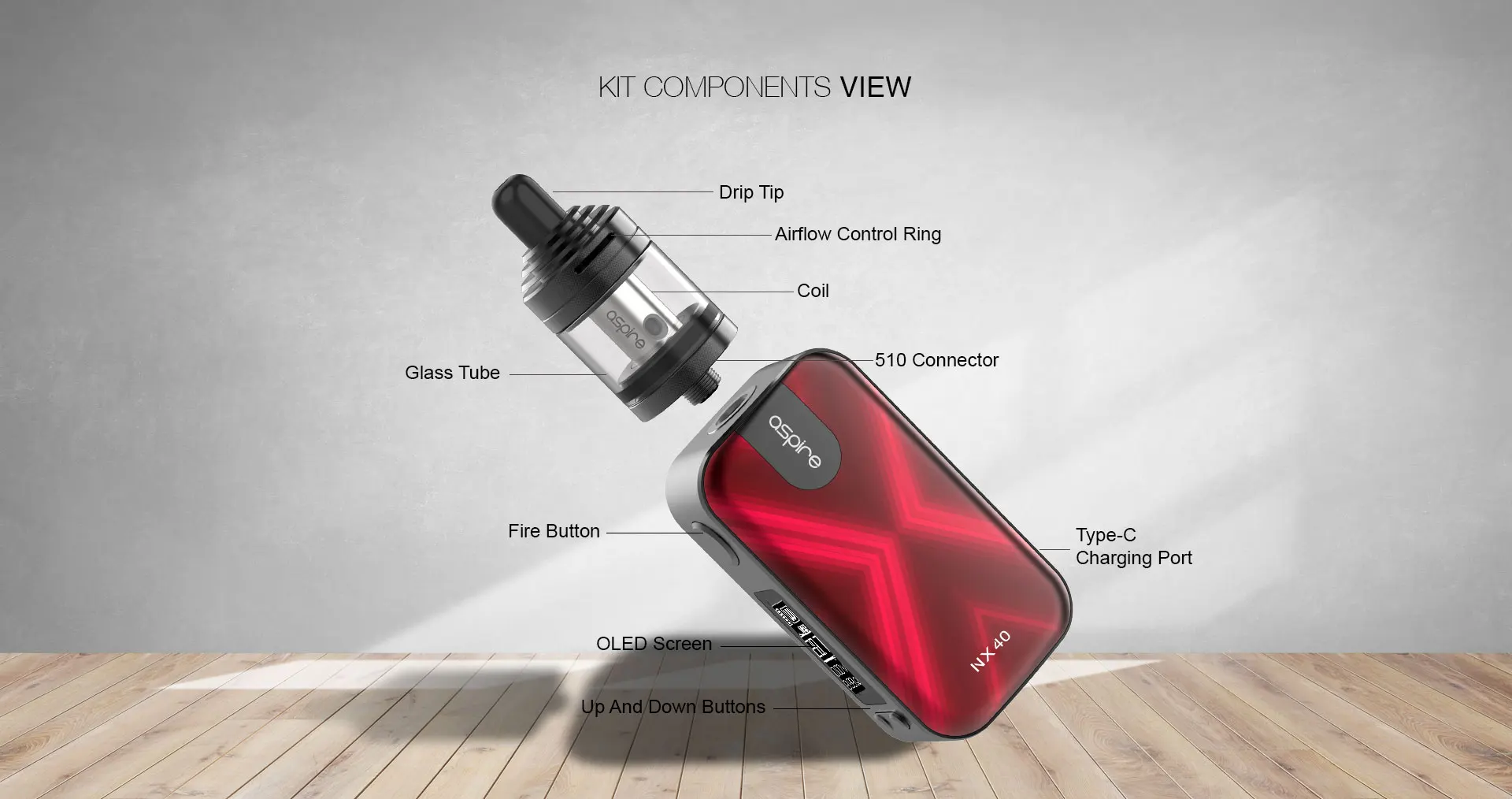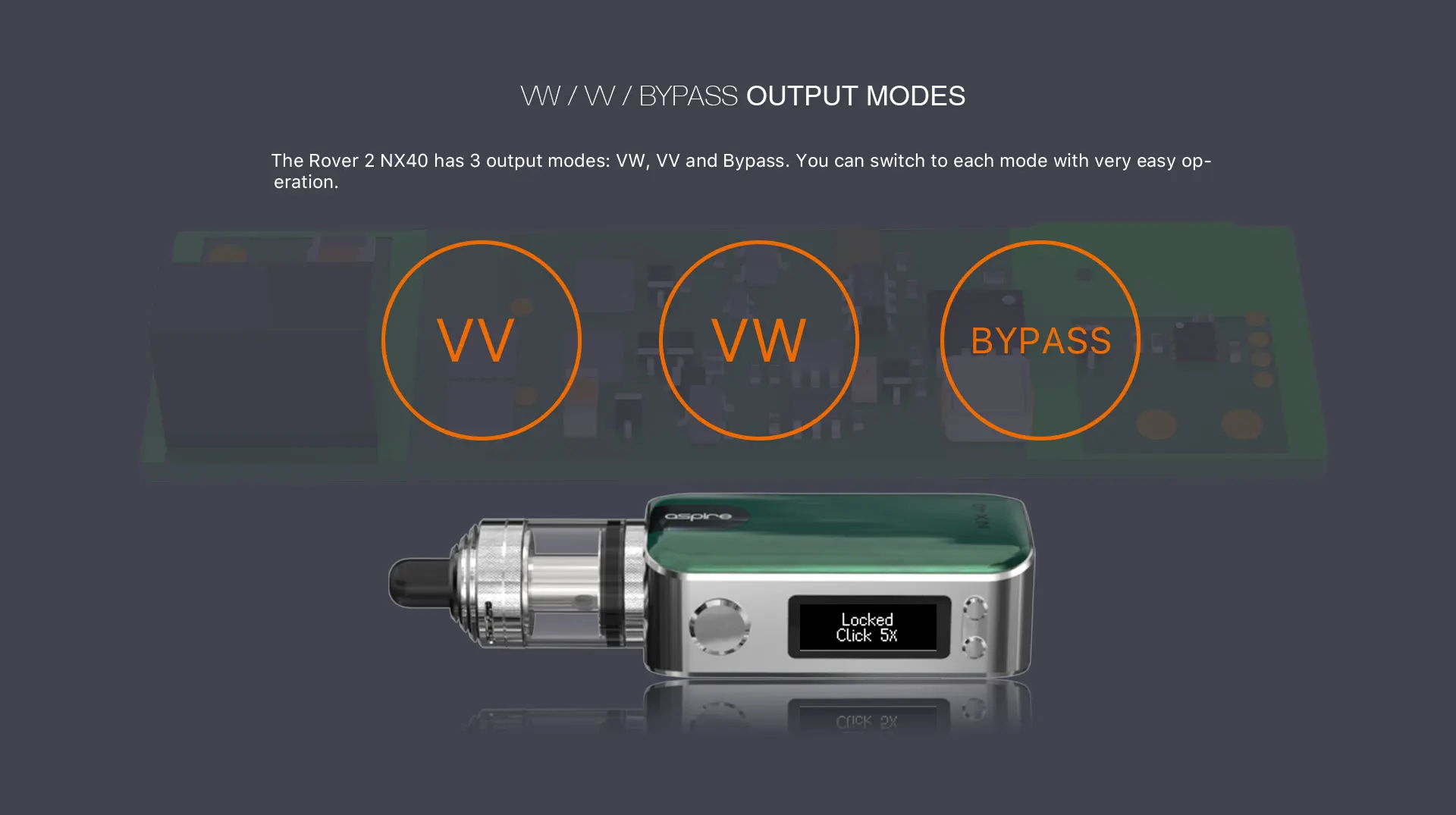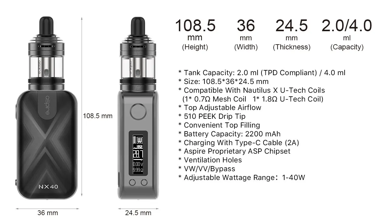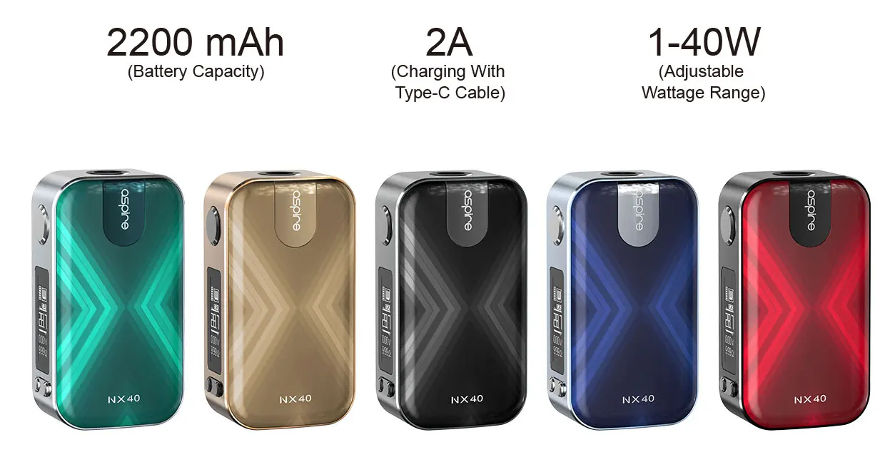 Aspire – Kit de Cigarette électronique Rover 2, 40W, 2200mAh, MOD NX40 et réservoir de 4ml, avec vaporisateur à bobine Nautilus XS X