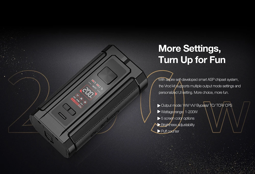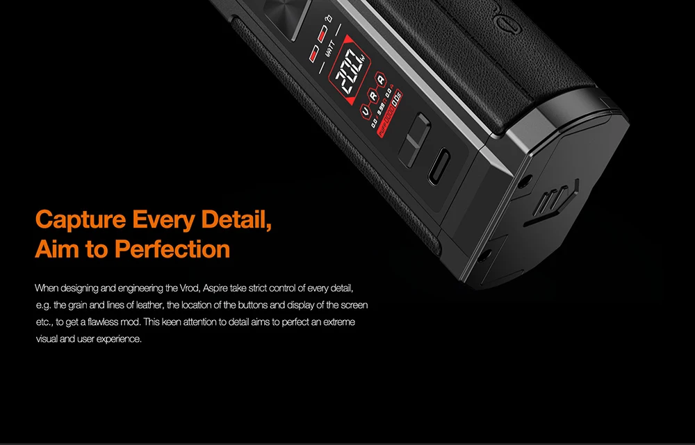 Répandant l’esprit d’originalité et d’artisanat; Aspire a des limites de conception structurelle triomphe pour rendre le mod Vrod finalement compact avec une sortie maximale de 200W.