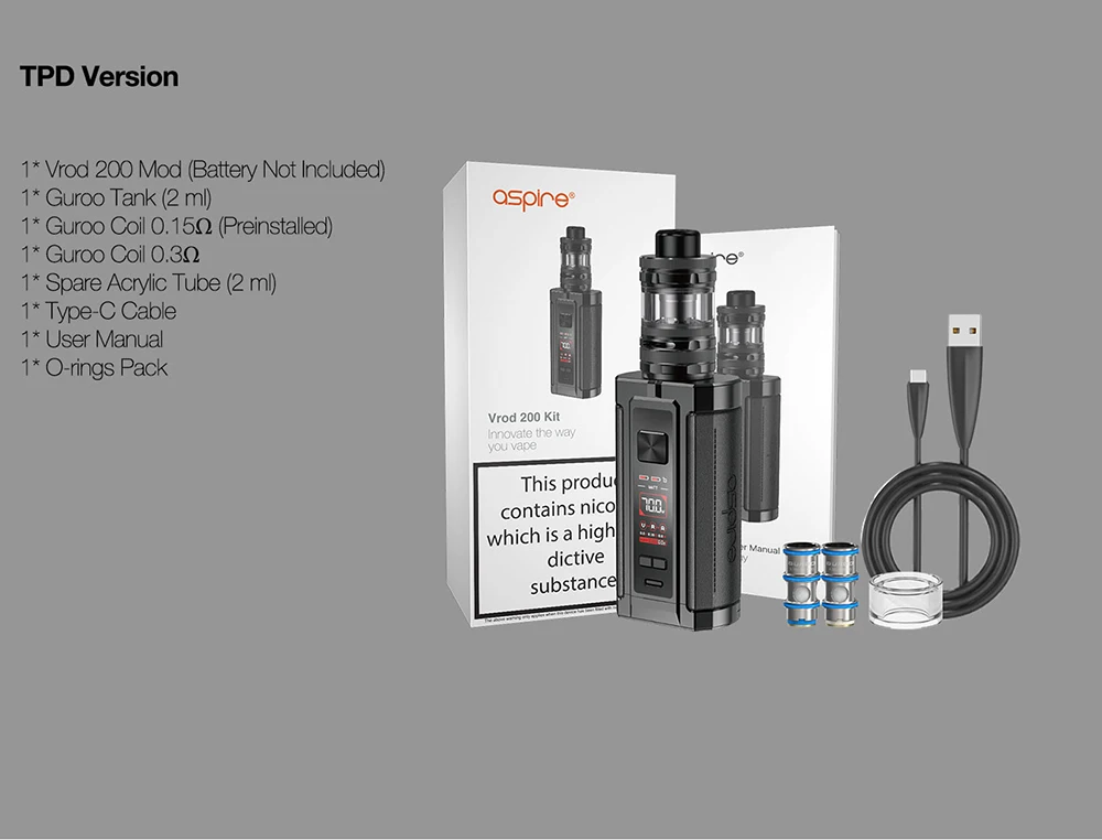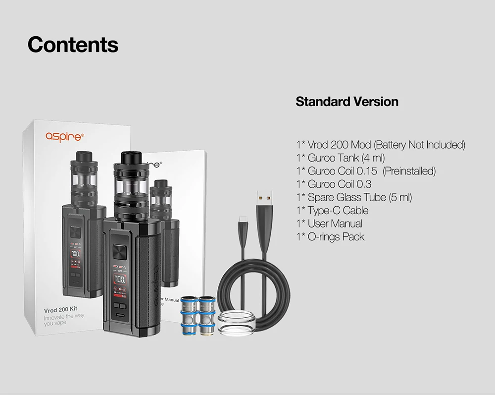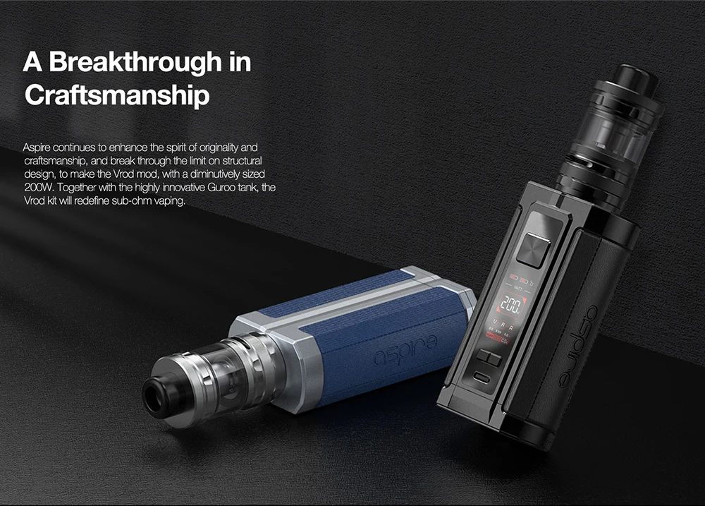 Aspire – Kit de Cigarette électronique Vrod 200, 200W Mod réservoir Guroo Ecig 0.3ohm /0.15ohm, bobine de maille, ensemble de dispositif de fumage