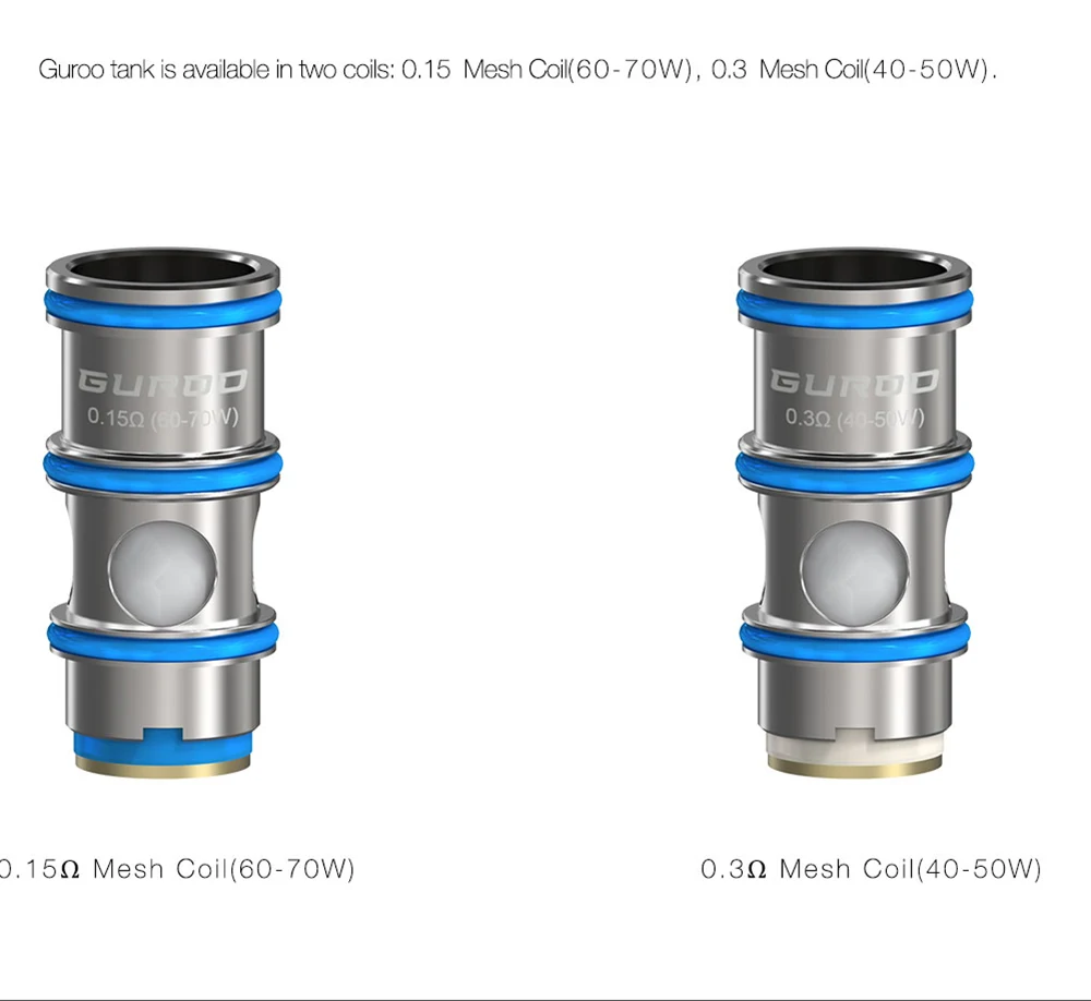 Gamme de puissance: 0.3 ohm bobine de maille: 40-50W/0.15 ohm bobine de maille: 60-70W