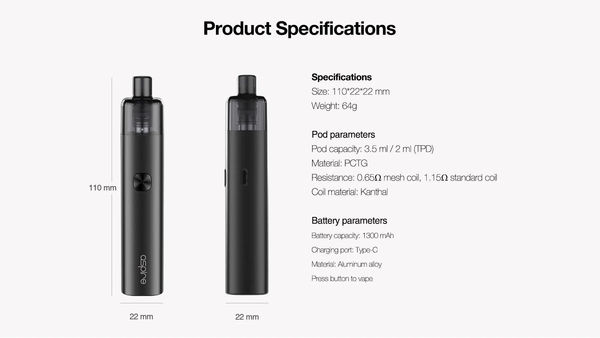 Capacité du Pod: 3.5 ml / 2 ml (TPD)