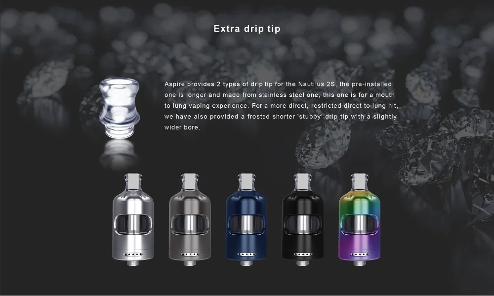 Aspire vous apporte le tout nouveau, tout aussi courbé, Nautilus 2S. Le nouveau réservoir Nautilus 2S livré en 2.6ml et une version 2ml pour TPD. Le dernier dans leNautilus 2 tankSérie, un design élégant et incurvé équipé d’une bobine BVC de 0,4 ohm pour la vaporisation directe vers les poumons et d’une bobine BVC de 1,8 ohm pour la vaporisation de la bouche vers les poumons. Conception résistante aux enfants à remplissage supérieur avec un auto-étanchéité en silicone garde les choses propres, et comme les bobines sont interchangeables avec d’autres bobines Nautilus, il vous permet de personnaliser votre préférence de tirage/vapeur.