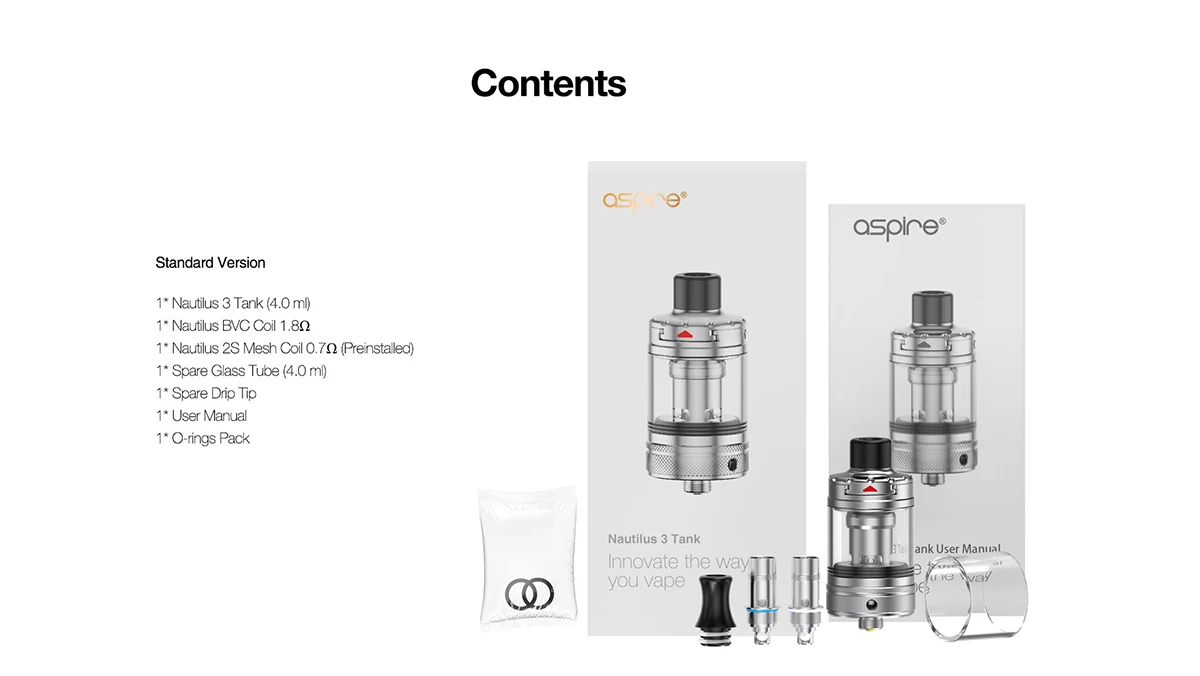 Aspire Nautilus 3 – réservoir de Cigarette électronique, vape, partie métallique, capacité de 4.0ml, dosette, flux d’air réglable, remplissage supérieur