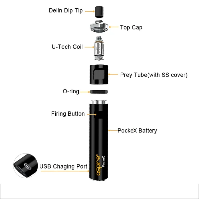 Cigarette électronique Aspire PockeX Pocket AIO Kit avec 0.6ohm 316L SS bobines tout-en-un vapeur Kit complet stylo Vape Ego AIO Kit
