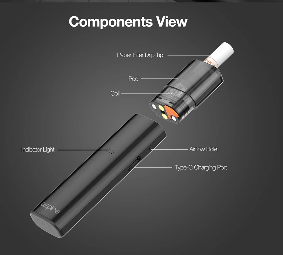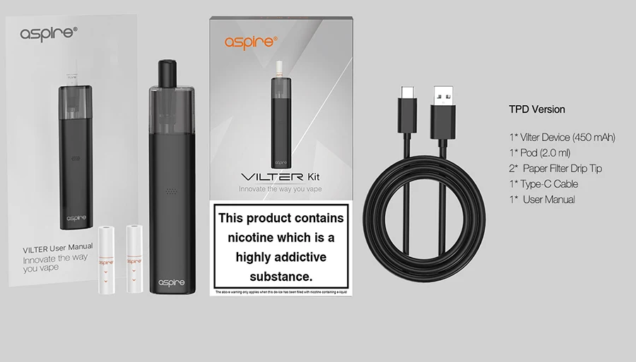 Aspire Vilter – Kit de vapotage de cigarettes électroniques, Pod Mod, système de filtre en papier, conception de pointe goutte à goutte pour arrêter de fumer avec bobine de maille de 1,0 ohm