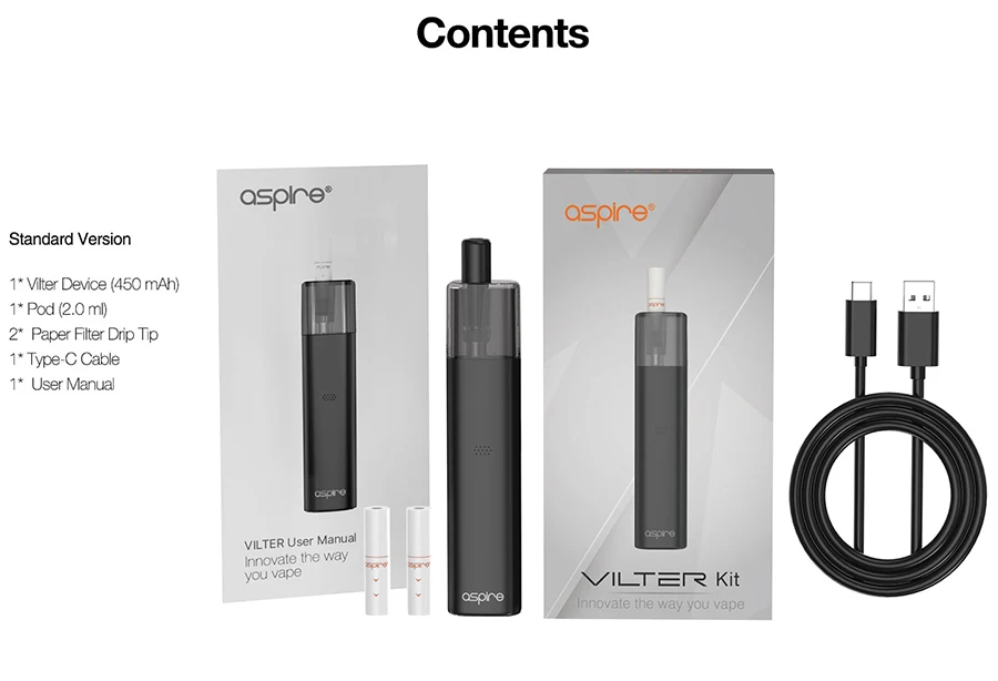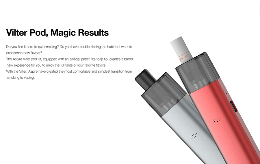 Le kit de dosettes Aspire Vilter, équipé d’une pointe d’égouttage de filtre en papier artificiel, crée une toute nouvelle expérience pour vous permettre de profiter pleinement du goût de vos saveurs préférées. Avec le Vilter, Aspire a créé la transition la plus confortable et la plus simple de fumer à vapoter.