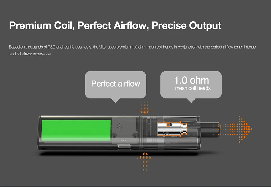 2. Vilter utilise des têtes de bobine de maille premium de 1.0ohm en conjonction avec le flux d’air parfait pour une expérience de saveur intense et riche