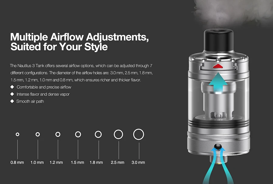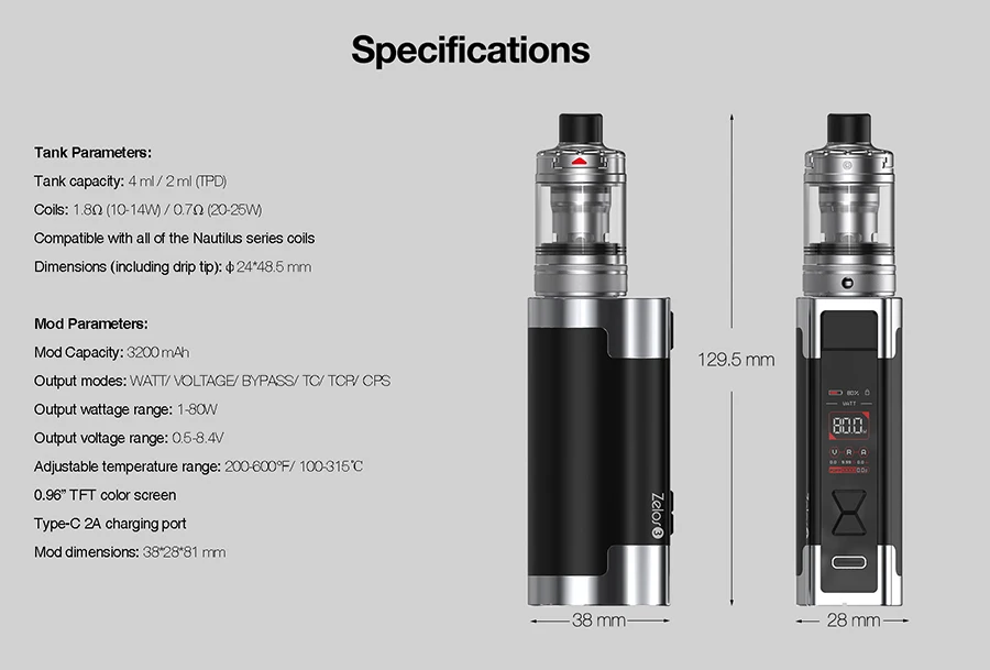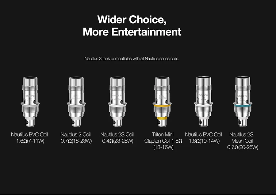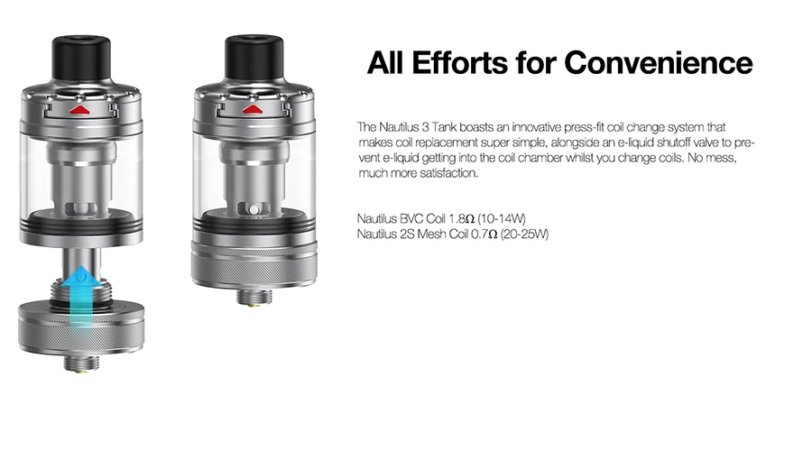 | coil resistance | Nautilus 2S mesh coil 0.7 ohm Nautilus BVC coil 1.8 ohm |