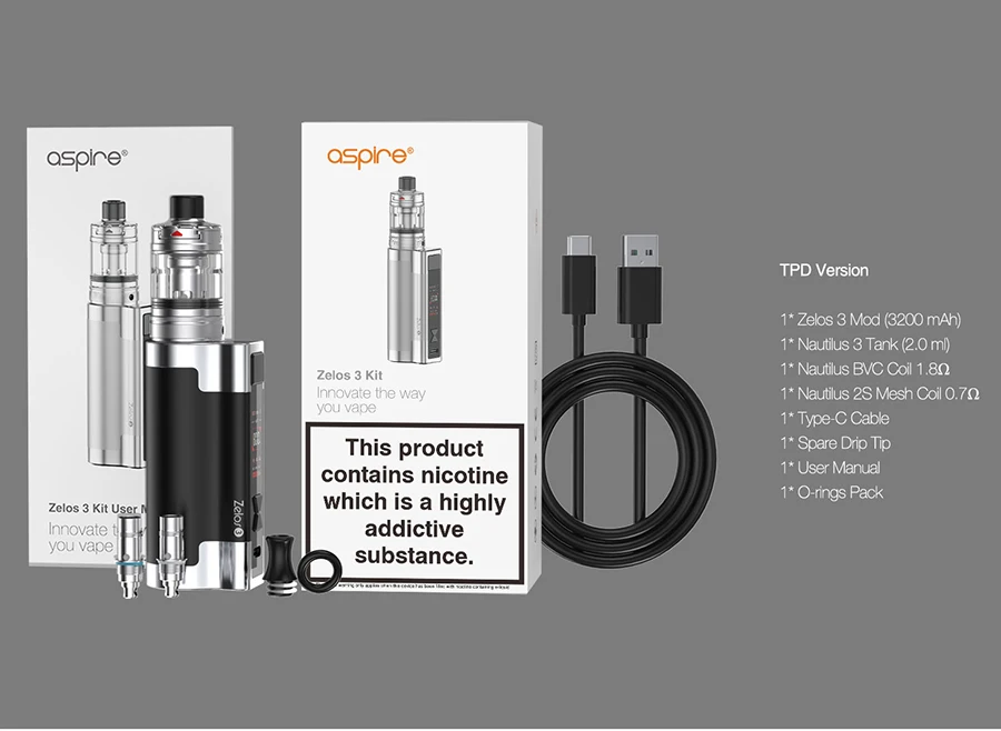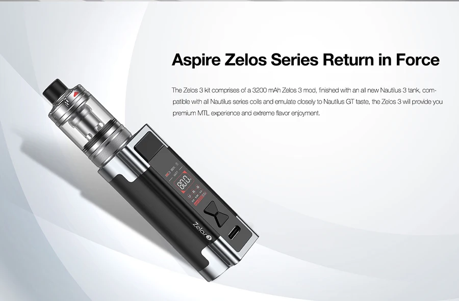 Aspire Zelos 3 Kit Vape Pod Cigarette électronique 80W Mod système vaporisateur VW/VV/Bypass/TC/TCR/CPS avec Nautiluis 3 réservoir 4.0ML