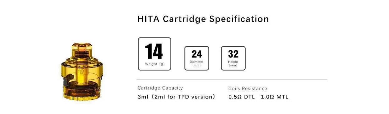 D’asvapeLa cartouche Hita Pod est livrée avec une capacité de 3ml qui est conçue pour Asvape Hita 30W Mech Pod Kit.