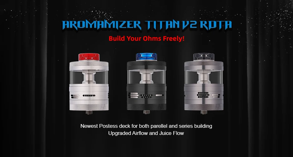 Aromamizer Titan V2 RDTA est un atomiseur de réservoir reconstructible vraiment énorme de la famille de l’aromiseur Steam Crave. Il est livré avec une capacité de jus de 28ml et un diamètre de 41mm pour les vapeurs à haute puissance. L’aromamiseur Titan V2 RDTA adopte un pont sans poste pour la bobine parallèle et la bobine décalée. Doté de belles grandes gravures en haut et en bas, il est facile à saisir et à démonter. Les pièces d’extension de remplacement font passer le Titan d’une capacité de 20ml à 32ml RDTA. Avec postless deck, Titan V2 RDTA vous apportera une expérience de vapotage diverse et miraculeuse. Le TITAN met la barre pour le marché de 41mm!