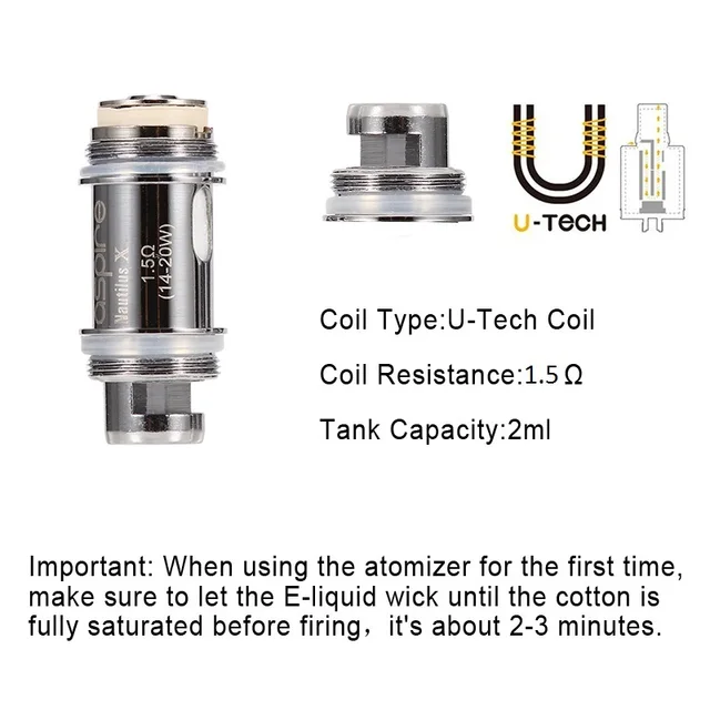 Atomiseur de Cigarette électronique Aspire Nautilus X Vape réservoir de 2ml avec 1.5 ohm/1.8 ohm u-tech Coil réservoir de Cigarette électronique