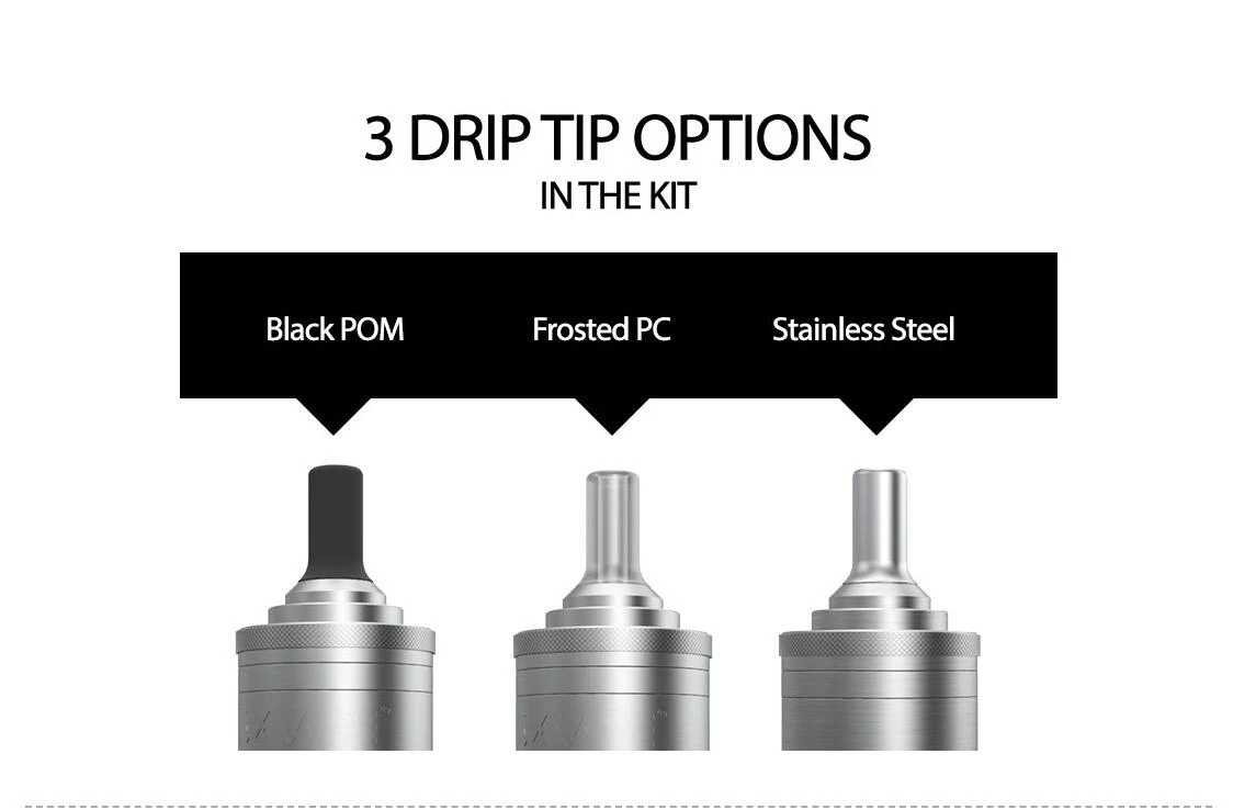 L’expromiseur V1.4 MTL RTA est le développement mis à jour de l’expromiseur V1 RTA, il est créé uniquement pour MTL vapotage. Vous pouvez remplir le réservoir rapidement et facilement via le système de remplissage supérieur, et le capuchon supérieur est conçu avec un verrou à baïonnette. Le flux d’air peut être contrôlé avec précision et il y a six broches de flux d’air dans l’emballage, qui vous fourniront un dessin et une saveur parfaits. De plus, le capuchon supérieur et l’anneau de circulation d’air sont tous deux molletonnés pour apporter une bonne adhérence. Le paquet contient également de nombreux accessoires de rechange supplémentaires, tels que trois embouts d’égouttage en option, quatre variantes de réservoir différentes. L’expromiseur V1.4 MTL RTA sera livré en édition limitée dans une boîte en bois noble. Il peut contenir du jus électronique de 2ml, 4ml ou 6ml avec différentes variantes de réservoir.