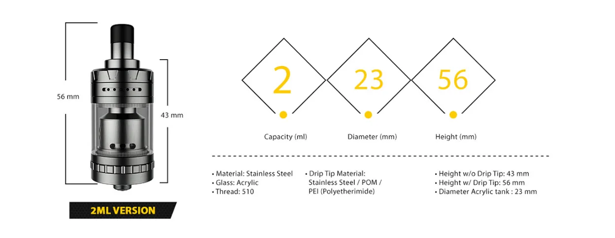 | Drip Tip Material | Stainless Steel / POM/ PEI (Polyetherimide) |
