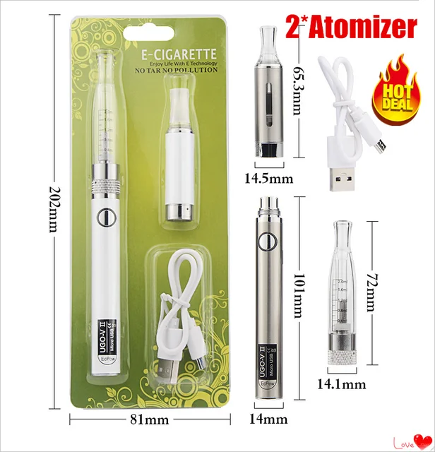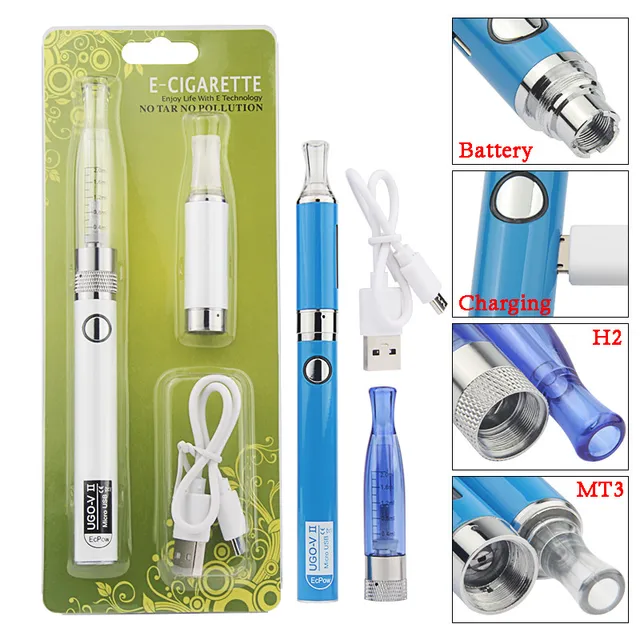 Atomiseur MT3 + H2, batterie de remplacement, 2 batteries, recharge USB, Kit Blister pour Cigarette électronique, Cigarette électronique, Cigarette électronique, narguilé, poêle à fumée, Ugo-V2