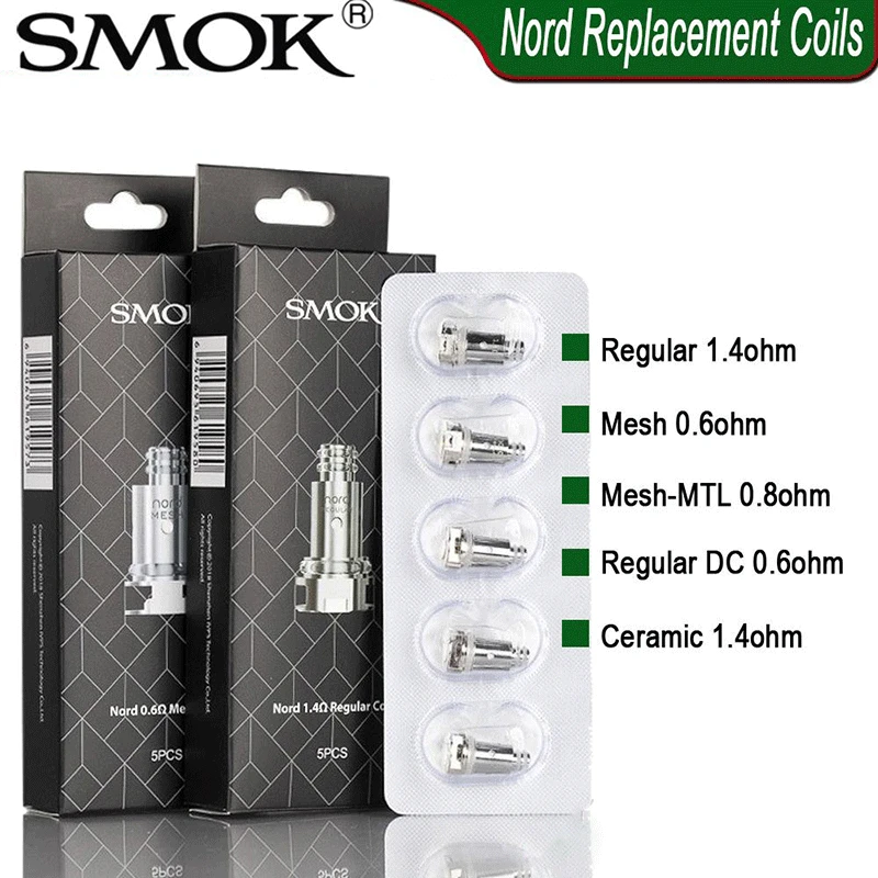 Bobine de remplacement Nord Kit 2, 5 pièces, pour cartouches Nord Pod 0.4/0.8/1.4ohm, bobine compatible Nord Pod