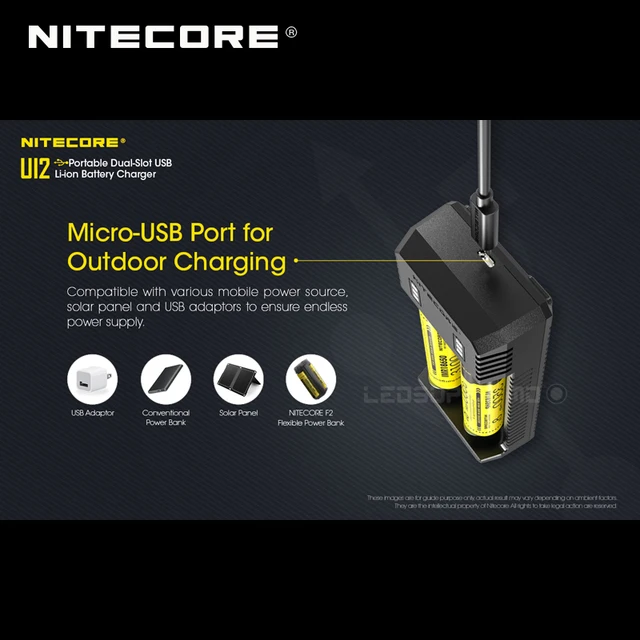 Chargeur USB Portable à double fente NITECORE UI2, pour Batteries Li-ion/IMR, entrée DC 5V/2A 10W