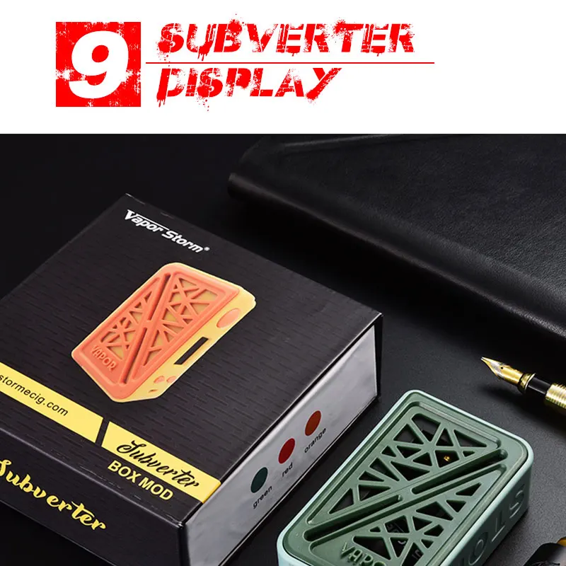 Caractérisé par sa conception ajourée sculptée, le Subverter fournit une puissance maximale de 200W, un firmware puissant à côté d’un grand écran couleur de 0.96 pouces qui offre une interface concise et claire avec deux barres de batterie séparées.