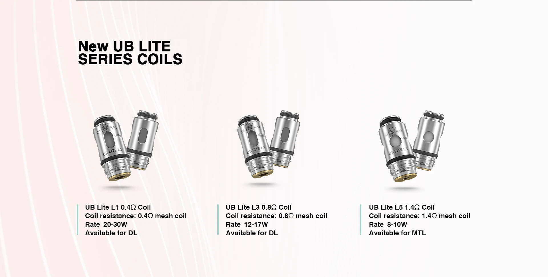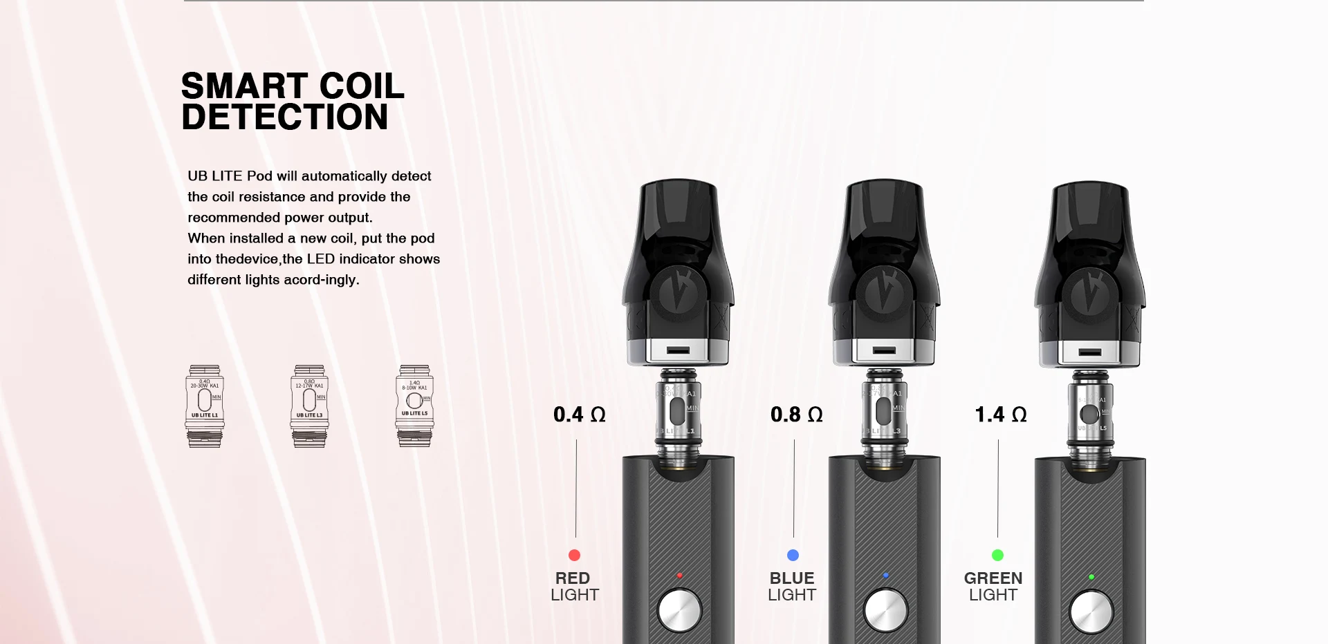 Cigarette électronique Lost Vape UB Lite, Kit 30W, batterie 1000mAh, cartouche 2ml, L1 0,4 ohm L5 1,4 ohm, bobine