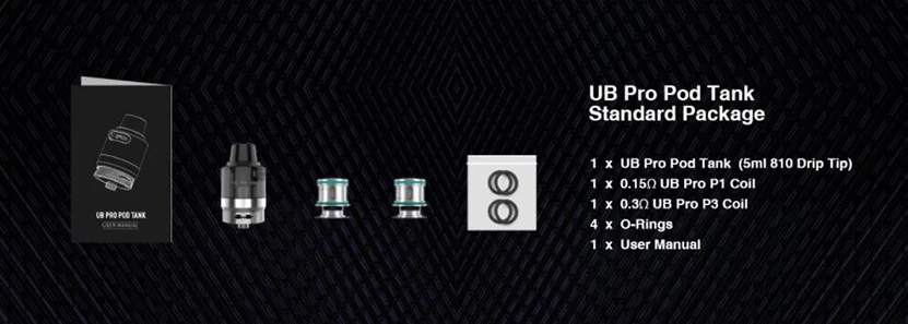 Le paquet du réservoir UB Pro Sub Ohm Pod est livré avec: