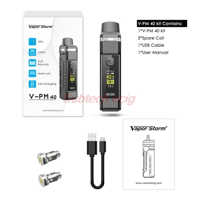Tempête de vapeur VPM 40W Pod Mod kit par 18650 batterie 0.35-0.6ohm 2 bobines 4.8ml Pod système Vape Cigarette électronique VS VINCI X pod