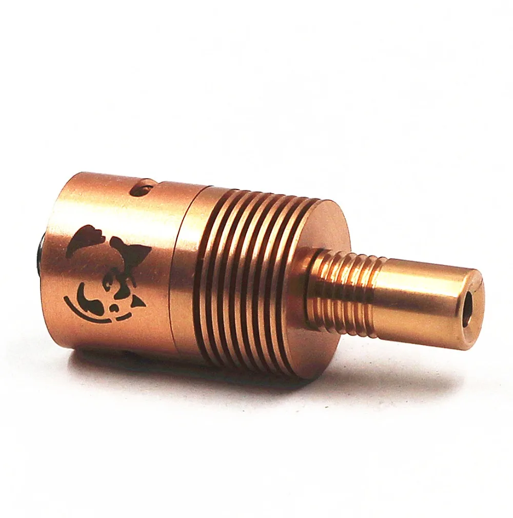 Ce RDA de style Doge produit beaucoup de vapeur et est certainement très waouh. C’est un atty de 22mm avec de grands trous de poteau. Il a deux trous d’air cyclops massifs qui sont réglables avec le capuchon supérieur. Parfait pour souffler des nuages dans votre comp préféré ou resserrer le flux d’air et profiter d’une saveur délicieuse.