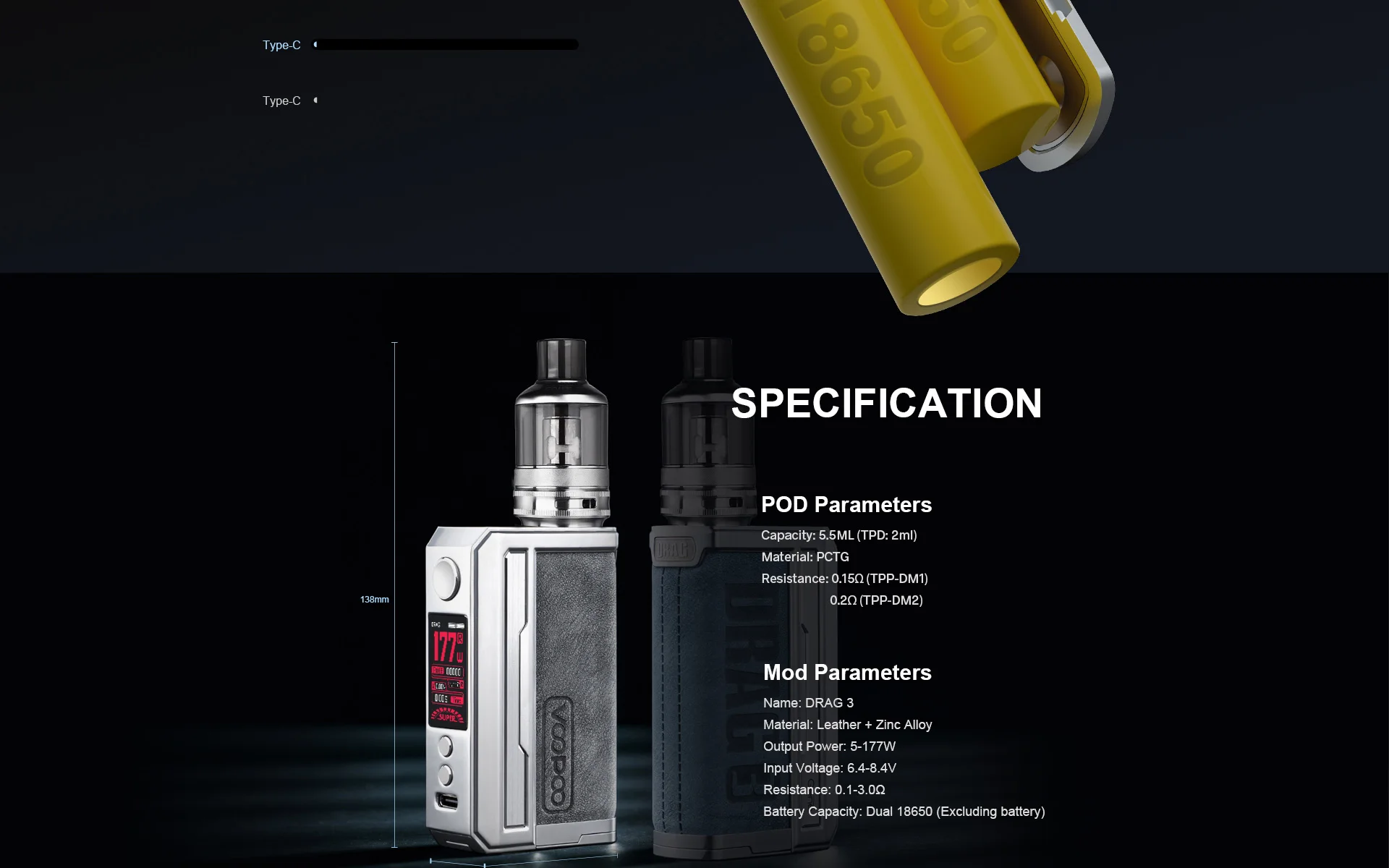 | Numéro de Modèle | Voopoo DRAG 3 kit |