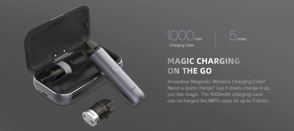 MIPO KitFournit l’équilibre optimal du futurisme et de la portabilité. Besoin d’une recharge rapide? Merci à l’étui de chargement magnétique sans fil! Posez-le, chargez-le, comme par magie. L’étui de chargement de 1000mAh peut recharger le MIPO vape jusqu’à 5 fois. Le MIPO vape dispose d’un système activé par tirage. Sa batterie de 200mAh permet une sortie de 9 w maximum pour créer une expérience de vapotage totalement améliorée.