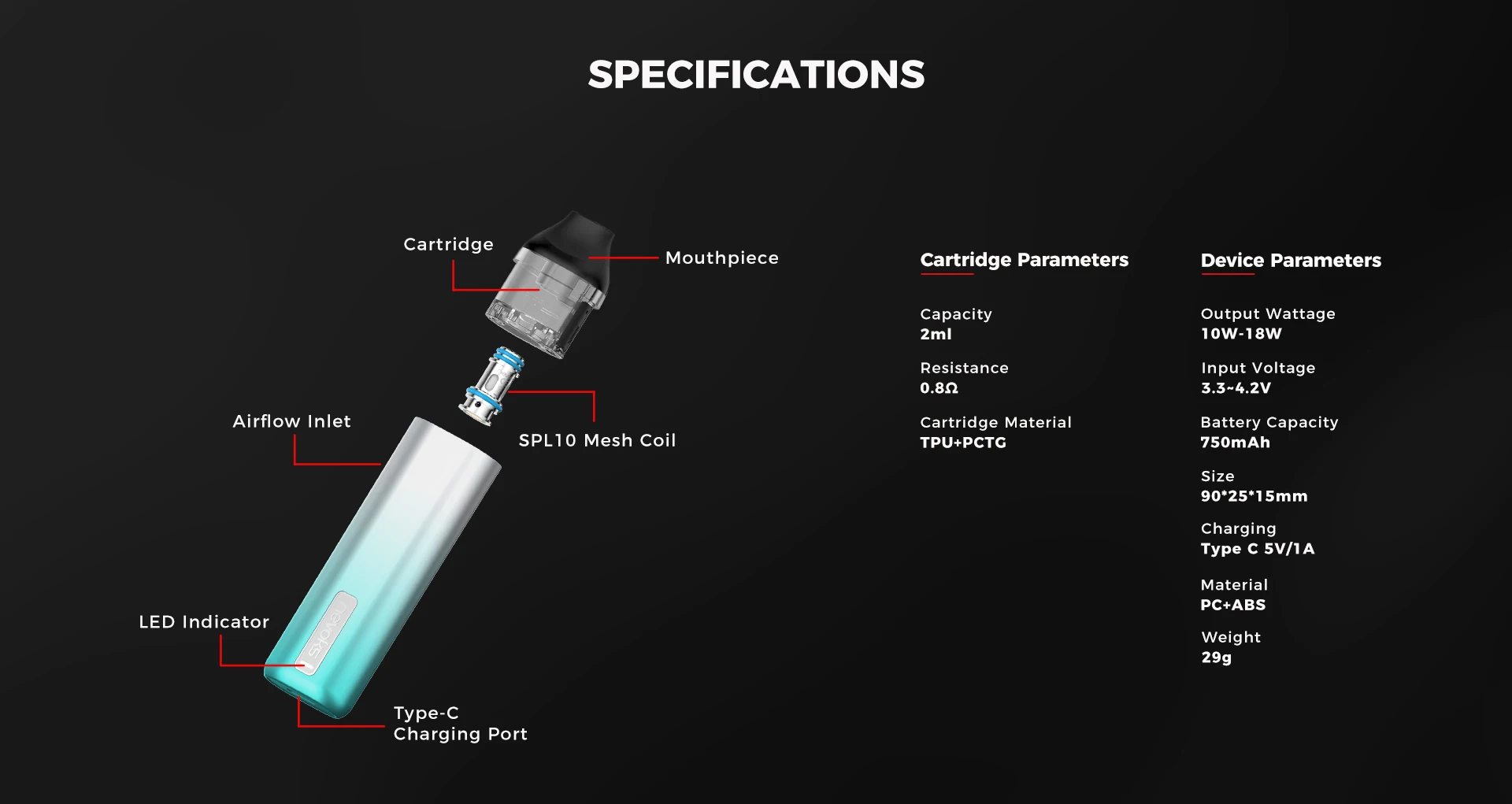2pcs Empty Pod5pcs 0.8ohm coil5pcs 1.0ohm coilBlackBleuGreyOcean BlueRose PinkRouge