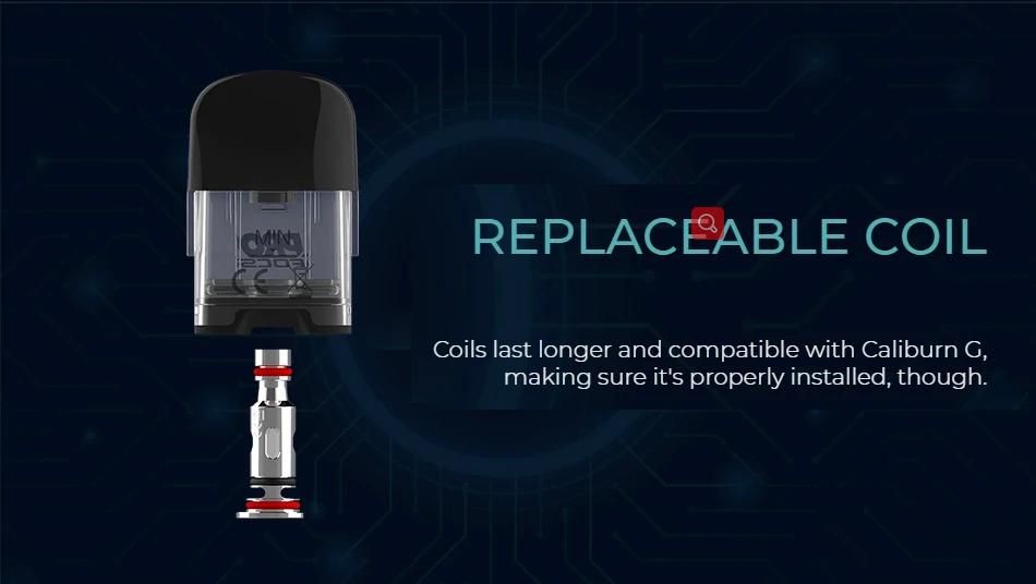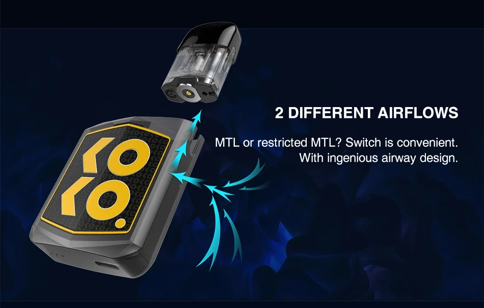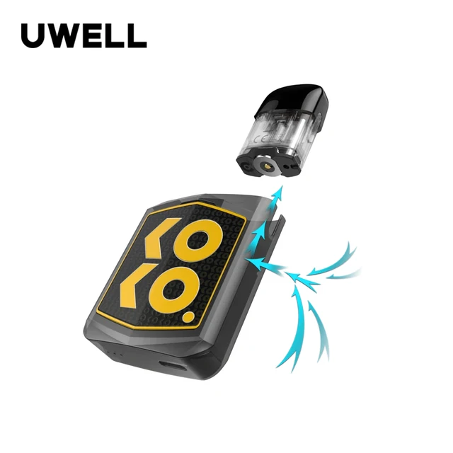 Uwell Caliburn KOKO Prime pod kit utilise un système de cartouche de pod rechargeable qui cartouche de pod a une capacité de 2ml et utilise un système de remplissage supérieur qui est le meilleur pour réduire les fuites. Conçu pour les e-liquides de nicotine salée, vous profiterez de tirages lisses et constants. Caliburn KOKO Prime est également compatible avec les dosettes et bobines Caliburn G, et introduit une nouvelle bobine féral de 1,0 ohm, ce qui la rend idéale pour les fumeurs de tous niveaux d’expérience. Une conception plug-and-play rend le remplacement et l’installation des bobines un processus sans tracas. La technologie Exclusive brevetée de test de saveur pro-focs apporte également la saveur à de nouveaux sommets. Grâce à la conception ingénieuse des voies respiratoires, vous pouvez obtenir deux expériences de vapotage différentes lorsque le pod est installé dans des directions différentes. Les utilisateurs peuvent alterner leur inhalation en tournant les dosettes, qu’ils préfèrent une inhalation lâche ou un tirage plus serré et plus limité.