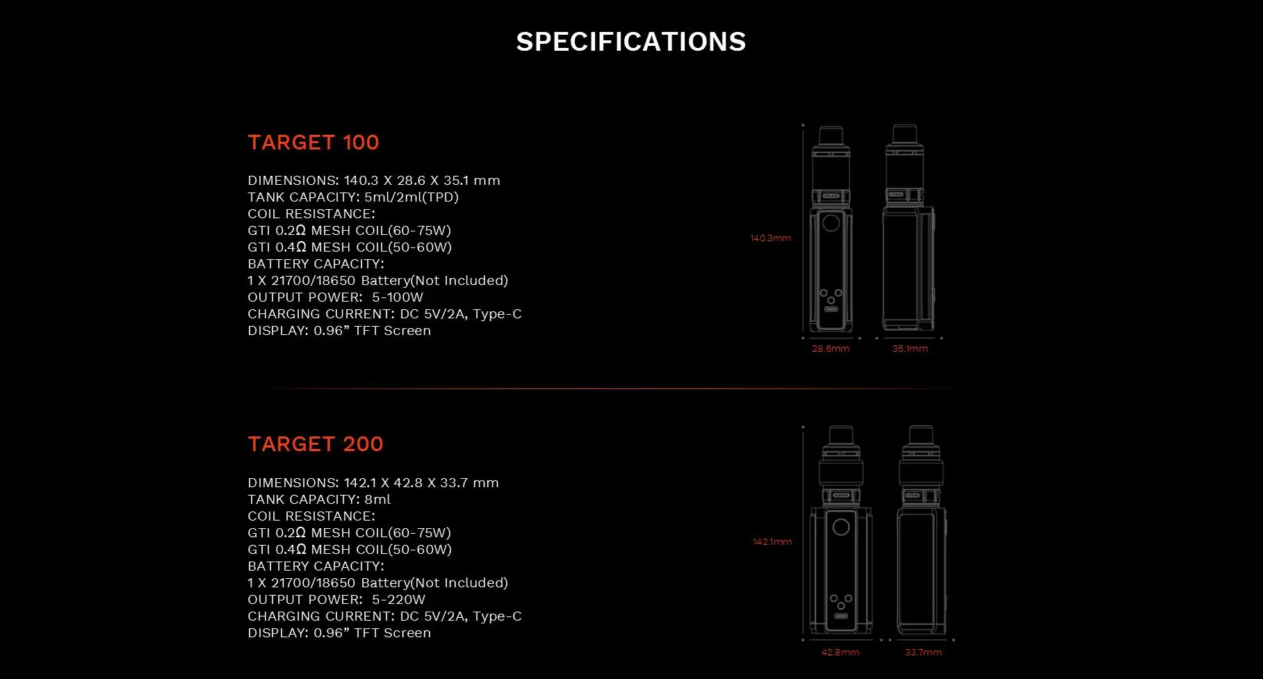 | Numéro de Modèle | Vaporesso TARGET 100 Kit Target 200 Kit |