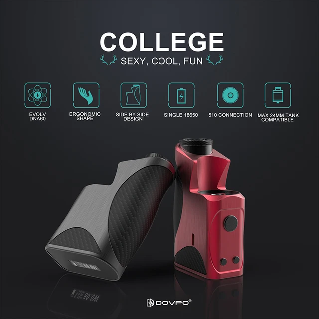 DOVPO College – Mod de vapotage de Cigarette électronique, avec puce EVOLV DNA60, alimenté par une seule boîte TC 18650 60W, Original